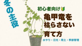 育成日記 🌿 初心者向け|亀甲竜の育て方と成長を止めないコツ 亀甲竜(Dioscorea elephantipes)は、名前の通り“亀の甲羅のような塊根(コーデックス)”が特徴の人気... 2025.11.27 育成日記